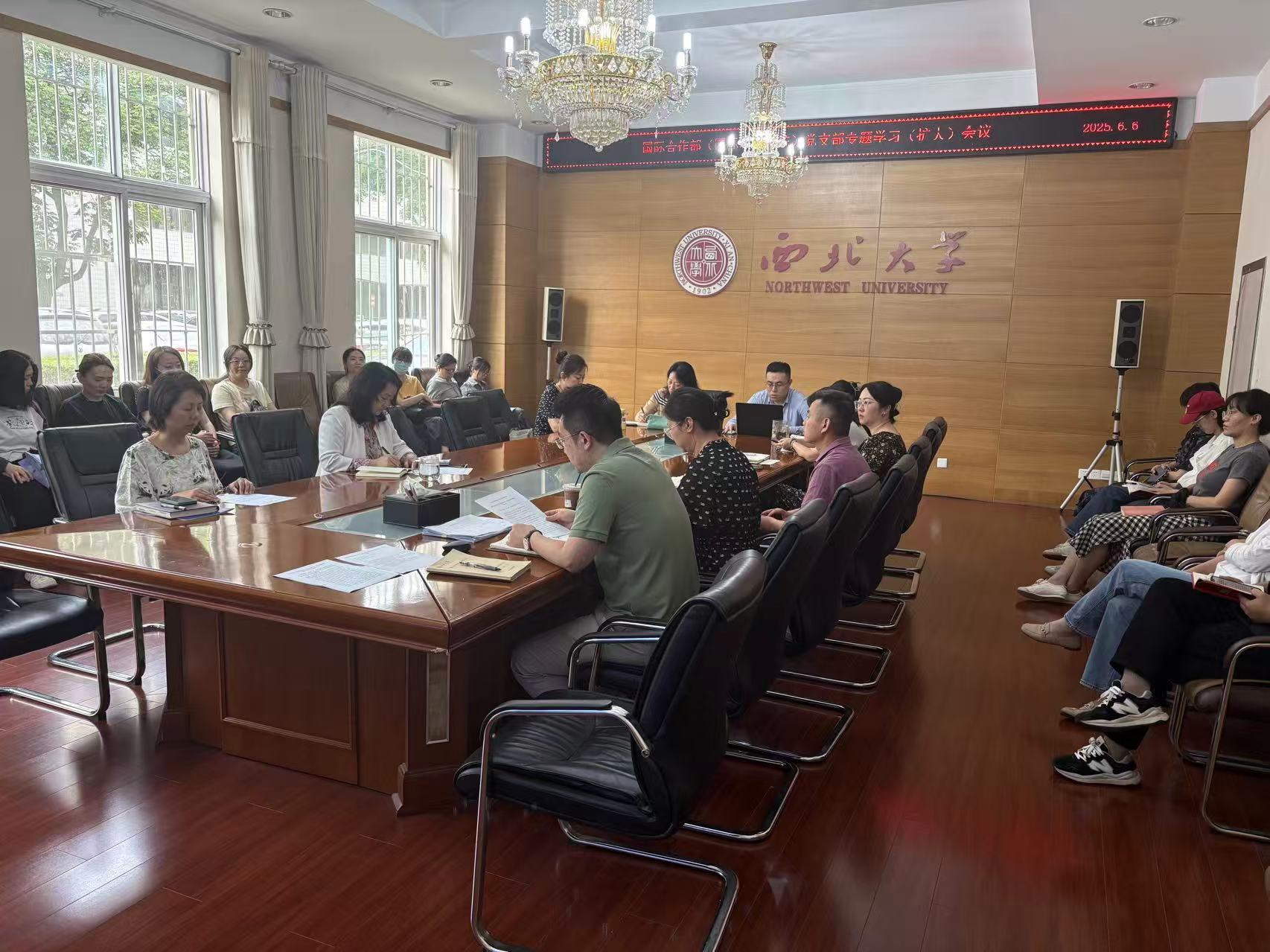 3月18日下午,国际合作部(mjm世界杯官网)党支部在太白校区召开2025年度组织生活会。会议由党支部书记何玮主持,全体党员参加会议。会议集体学习了《习近平谈治国理政》第五卷中的“为强国建设、民族复兴伟业营造更有利国际环境”篇。何玮代表领导班子作对照检查,通报了开展深入贯彻中央八项规定精神学习教育情况以来整改问题及巡视巡察、审计发现问题和整改落实情况,围绕“加强理论武装、执行上级组织决定、严格组织生活、加...