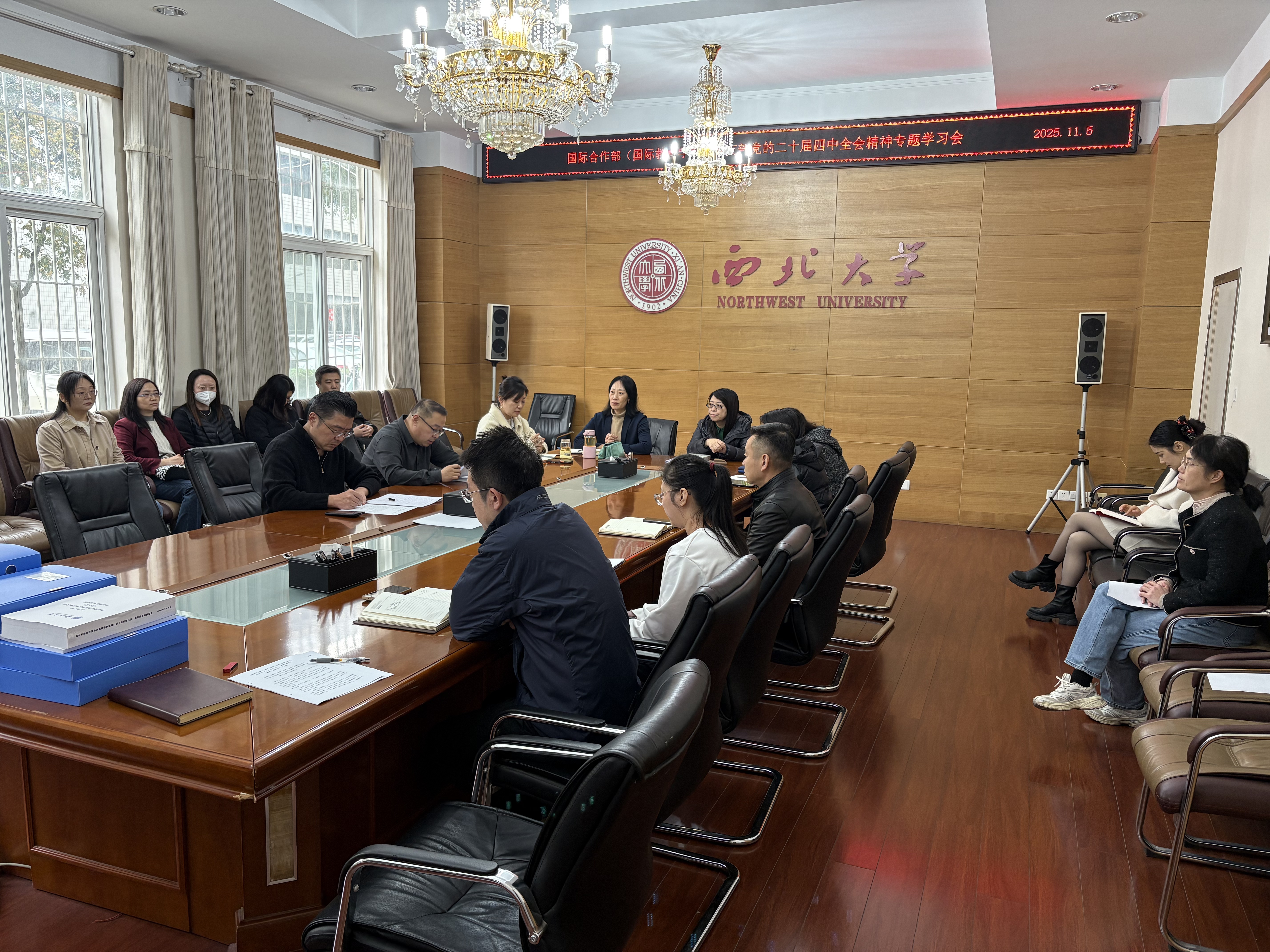 11月6日,国际合作部(mjm世界杯官网)党支部在太白校区召开党的二十届四中全会精神专题学习会。会议由党支部书记何玮主持,全体党员参加会议。会议集体学习了习近平总书记《关于〈中共中央关于制定国民经济和社会发展第十五个五年规划的建议〉的说明》,随后组织学习了中国共产党第二十届中央委员会第四次全体会议公报精神、《习近平谈治国理政》第五卷中“朝着建成教育强国目标扎实迈进”篇目。何玮传达了公司“十五五”规划会...