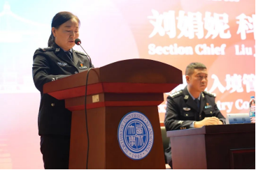 刘娟妮科长致辞中提醒全体新生要珍惜宝贵的出国留学机会,专注于专业和汉语学习,不断感受中国文化,遵守中国法律法规,尊重文化差异并不断加深了解中国文化,不要做违反法律和损害自身安全的事情。
