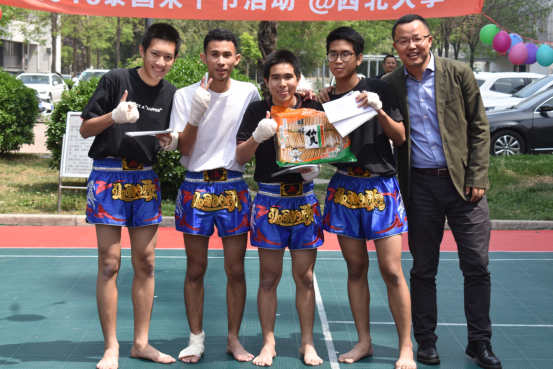 ORACHA TANAKORN、张银仓分别为现场泰国学子送上了节日祝福和期望。泰国员工李明金向大家介绍了宋干节的来源及节日习俗。泰国罗勇中学、姹棱宽女子中学的员工们还带来了精彩的泰拳、传统舞蹈表演。随后国际员工选美比赛将活动的气氛推向高潮,来自韩国的姜惠源、李河林及来自塔吉克斯坦的阿依古丽同学分别获得本次比赛的冠亚季军。
