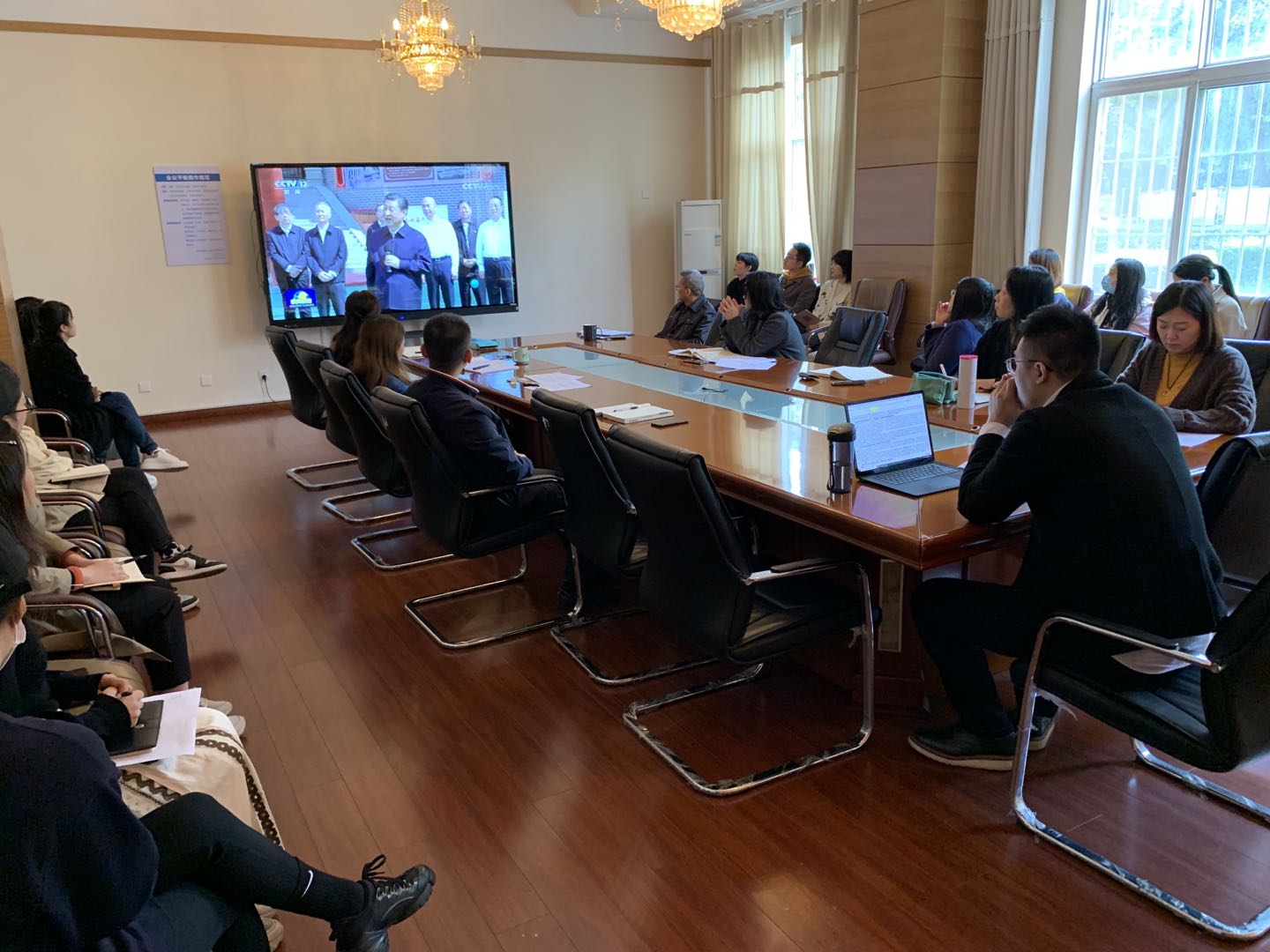 与会教职工首先观看了习近平总书记来陕考察视频新闻,随后,各办公室负责人领学了省委关于认真贯彻落实习近平总书记来陕考察重要讲话重要指示的相关要求和公司《关于认真学习宣传贯彻习近平总书记来陕考察重要讲话重要指示的通知》等文件精神。大家一致认为,要继续坚持用习近平新时代中国特色社会主义思想更为准确地判断形势、审视工作,科学地确定工作目标、大胆打破陈旧观念,勇于破除惯性思维,以更加宽广的眼界谋划发展,以兼收并蓄的胸襟借鉴经验,不断研究新情况,解决新问题,以实际行动推动公司国际化事业高质量发展取得新的更大进步。
