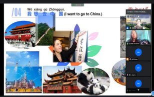 同时,汉语文化课教师团队还以游览西安名胜古迹为线索,精心设计了以“云游古都”为主题的汉语听说系列课程,采用视频会议软件小班互动式直播授课的方式,让营员们在“云游”中学习汉语。随着课程的进行,兵马俑、西安城墙、乾陵、碑林、甚至biangbiang面这些在一般汉语初级学习者那里堪称生僻的词汇,成了每个营员张口就来的常用词。课程结束时,师生们还共同唱起了中国民歌《茉莉花》。