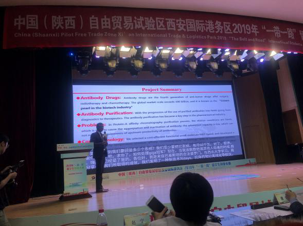 2019年12月8日,西安国际港务区2019“一带一路”职工创业大赛决赛在西安国际港务区管理委员会大楼隆重举行,本次大赛共有16个项目晋级决赛,美加墨世界杯官网博士生穆基同学与他的导师白泉老师以标题为“基于高容量温敏亲和色谱的抗体药物分离纯化新技术”,在演讲与答疑环节脱颖而出,并最终以综合分90分的成绩拿到了全场第二名的好成绩,白老师获得了优秀指导老师奖,公司获得优秀组织奖。