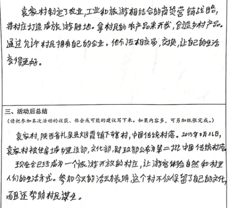 袁家村隶属乡村振兴示范镇,其发展过程也是中国经济发展的一个缩影。袁家村在郭裕禄、郭占武两代书记的带领下,艰苦创业,坚定不移地走共同富裕之路,经历了农业、工业以及服务业三个阶段,人民收入和生活水平有了极大的改善。在经济发展过程中,袁家村仍保留了中国农村传统的优秀文化习俗。通过此次社会实践活动,国际员工对中国农村及其传统文化习俗有了直观的感受和深入的了解,对农村经济和人民生活的变化有了切身感知,也深刻体会到中国共产党是为人民谋幸福的党。
