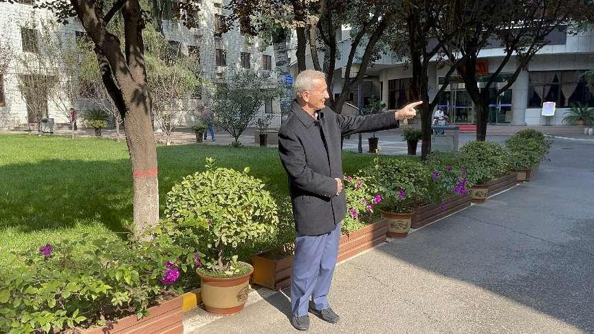 讲座开始前,傅教授特地回到当年学习和生活过萃园职工楼旧地参观并留影。