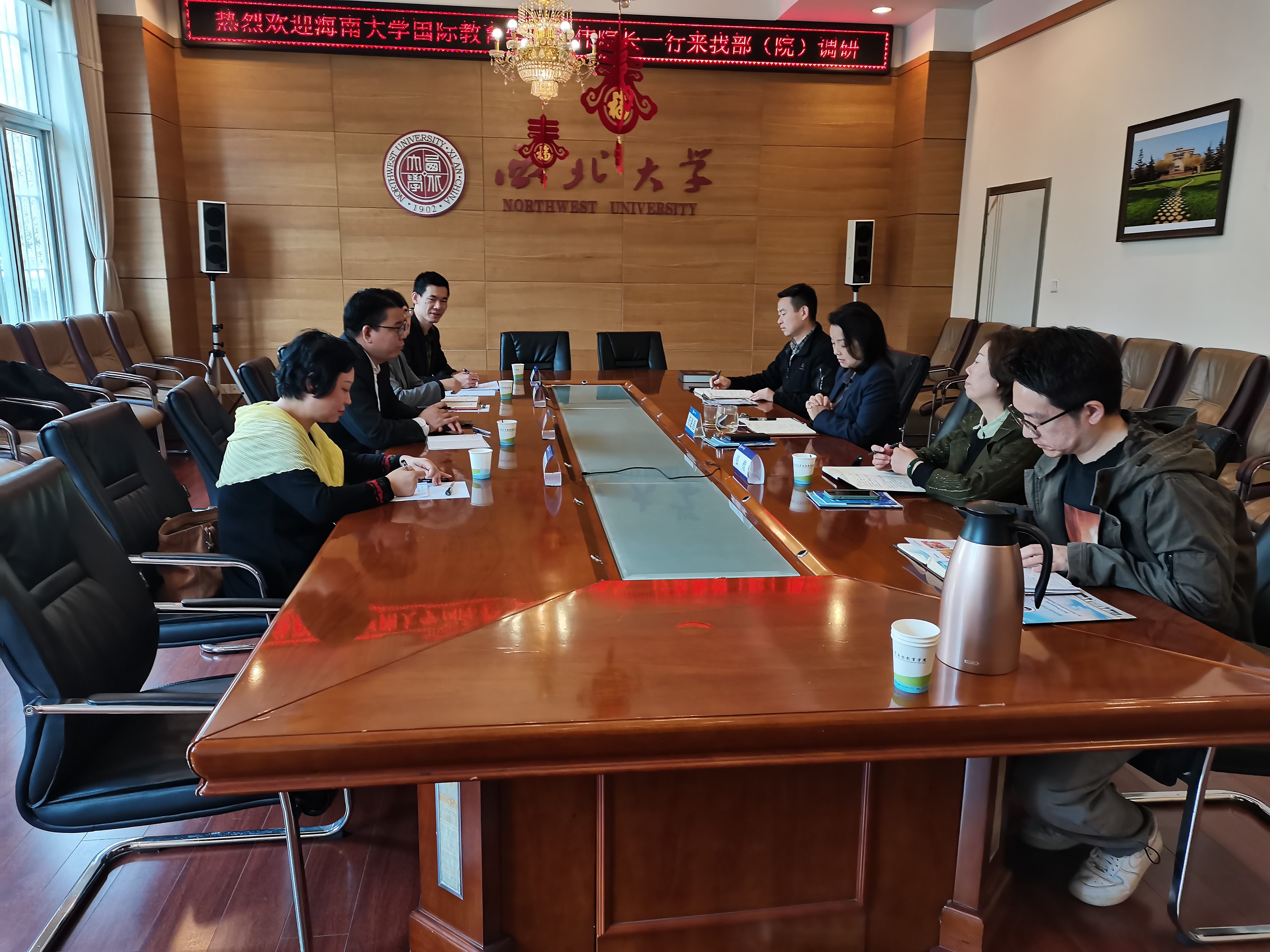 3月31日下午,海南大学mjm世界杯官网经理周伟教授一行4人来部(院)调研,国际合作部(mjm世界杯官网)部长(经理)任惠莲、副经理张熠及相关科室负责人参加座谈会。