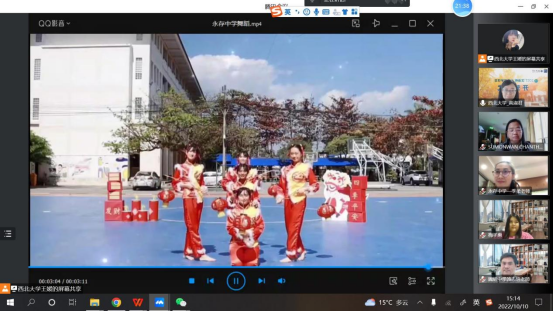参加“汉语桥”的泰国同学还为开营仪式准备了特别节目并录制成视频在仪式上播放,表演形式各异,但都充满了浓郁的中国“味道”。罗勇中学的同学模仿中国社交平台的日常搞笑小视频,让大家看得津津有味;团结中学的三位同学以中国网红歌曲为背景,自编自导表演舞蹈,展现了古香古色的中国风;永存中学的同学则以中国新年元素为主题表演了一段喜庆的中式灯笼舞,满屏的中国红仿佛让大家置身于中国热闹的新年联欢会中。同学们的表演都非常精彩,想法和素材均来自于网络浏览学习,体现了泰国青少年对中国文化的关注和热爱。