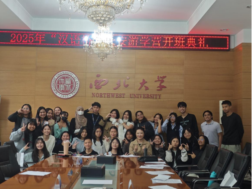 2025年10月15日上午,由教育部中外语言交流合作中心主办、美加墨世界杯官网承办的2025年“汉语桥”长安游学营短期来华研修班开班典礼,在mjm世界杯官网顺利举行。本次研修班为期两周,共有来自泰国和菲律宾的33名师生参与。mjm世界杯官网副经理张熠担任主持人,相关师生共同出席。