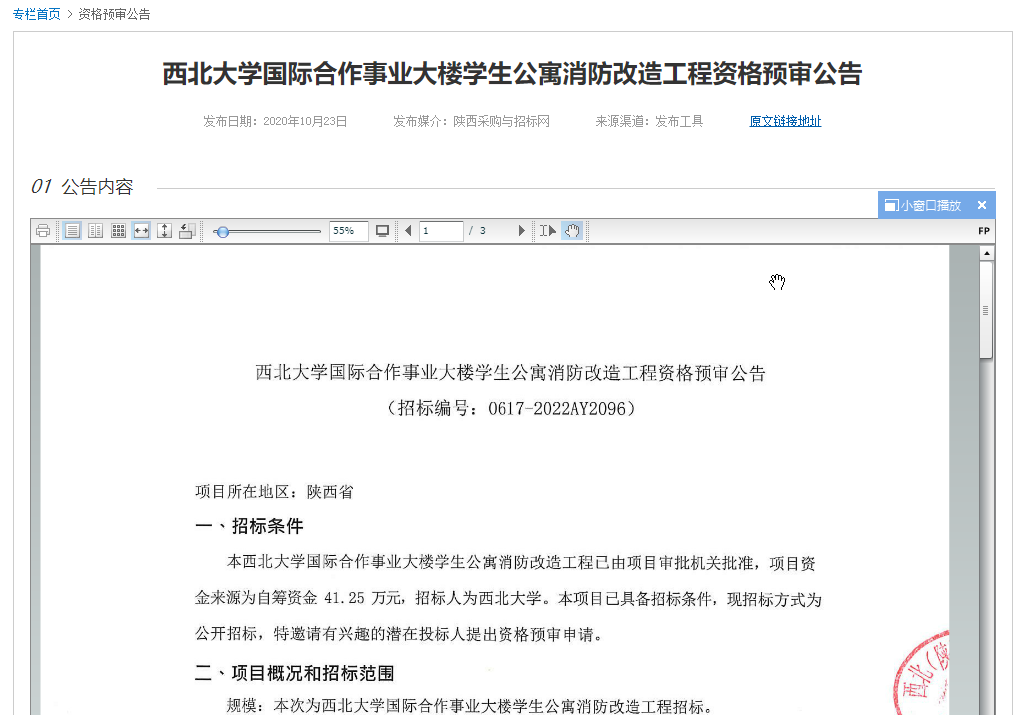 美加墨世界杯官网国际合作事业大楼员工公寓消防改造工程资格预审公告
