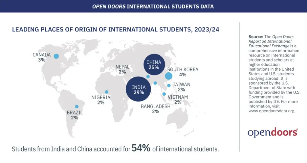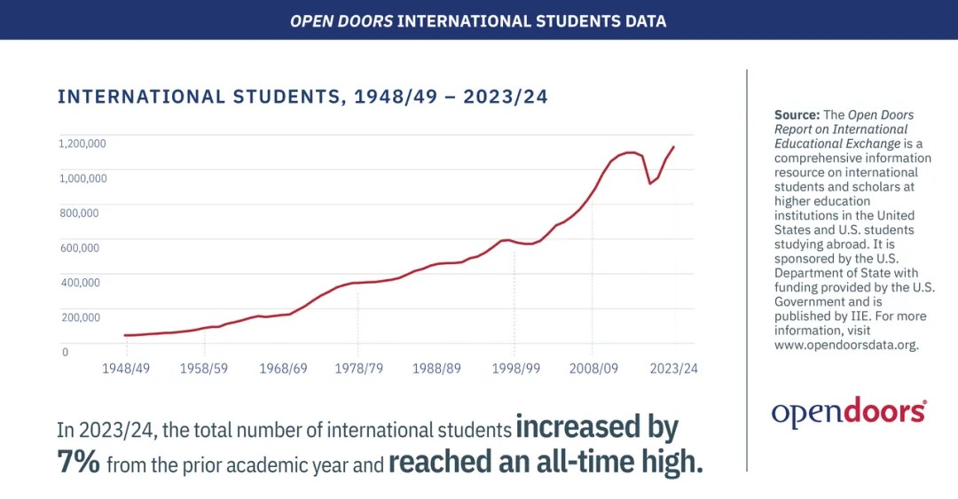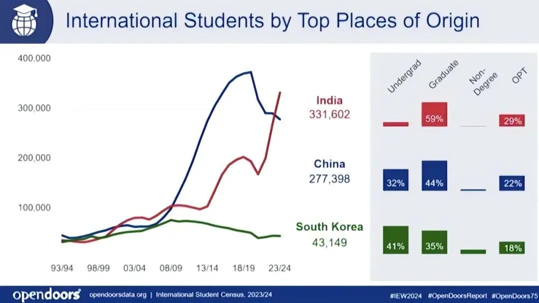 就在上周,美国国际教育协会(IIE)发布了2024年最新《美国开放门户报告》。