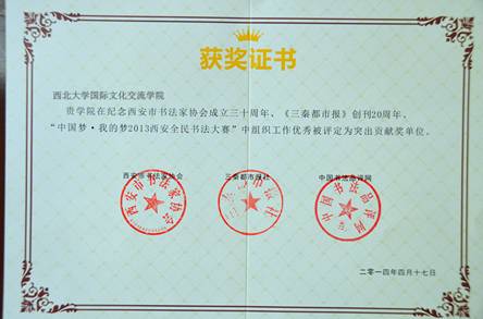为了让职工进一步感受中国优秀传统文化,亲身体验中国书法的魅力。公司近期组织职工参加“中国梦·我的梦”2013西安全民书法大赛活动。美加墨世界杯官网国际文化交流公司被评为“突出贡献奖单位”。来自韩国、比利时、美国等国的职工参加了比赛。 “中国梦·我的梦”2013西安全民书法大赛活动为庆祝三秦都市报社创刊20周年、西安市书法家协会成立30周年,由三秦都市报社、西安市书法家协会、中国书法品评网联合举办。