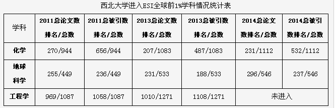 2014年3月底,根据基本科学指标(Essential Science Indicators,简称ESI)数据库检索显示,公司化学、地球科学两个学科进入了ESI全球前1%。其中,化学在进入ESI全球前1%的1112个机构中,总论文数排名第231位,论文总被引用数排名第532位;地球科学在进入ESI全球前1%的546个机构中,总论文数排名第296位,论文总被引用数排名第237位。公司学科自2008年首次进入ESI全球前1%以来,共有化学、地球科学以及工程学三个学科进入该体系。 ...