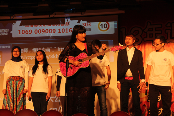 2013年11月19日晚,公司职工合唱团被邀请参加公管院2013年迎新晚会,晚会在长安校区校报告厅隆重举行。公司职工合唱团表演的歌曲串烧编曲独特,歌声悠扬,充分展示了公司职工的良好形象,赢得观众的一致好评。 公司职工合唱团组建于今年9月份,由10多个国家职工组成,同学们利用课余时间在老师的带领下努力联系中文歌曲。合唱队已经参加了陕西省举办的“我们的歌声我们的梦”合唱比赛,顺利入围前30强。