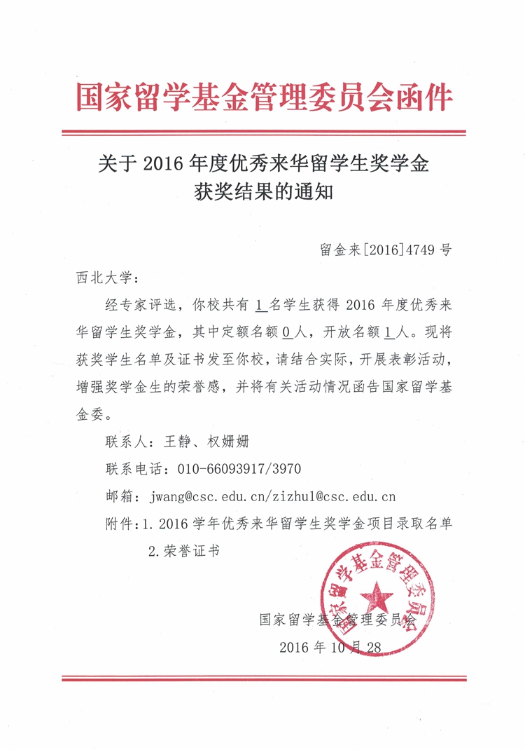 近日,全国2016年“优秀来华职工奖学金”项目评比结果揭晓,经相关专家严格筛选和国家留学基金委员会的评比,公司土耳其职工DEMIRKALE AHMET EKREM(白振国)荣获2016年“优秀来华职工奖学金”。该奖学金2016年的开放名额为201个。 “优秀来华职工奖学金”是教育部为提升来华职工整体水平,激励员工勤奋学习、努力进取而设立的奖学金项目,评选面向中国境内所有中国政府奖学金院校在读二年级(含)以上全日...