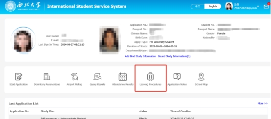 2、点击"离校手续办理""Leaving Procedures "。